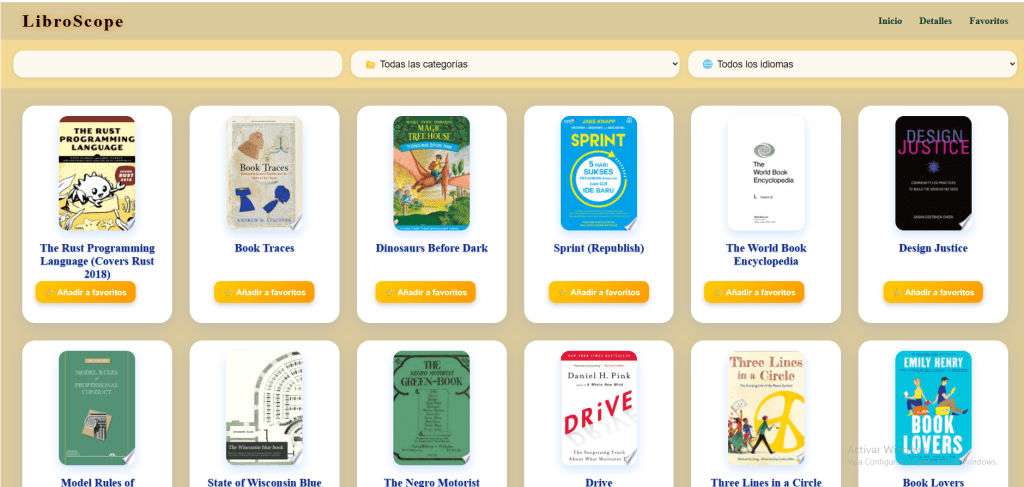 Es una aplicación diseñada para la búsqueda y gestión de libros de forma sencilla e intuitiva. Permite a los usuarios explorar diferentes títulos, filtrarlos según sus preferencias y acceder a información relevante sobre cada libro.